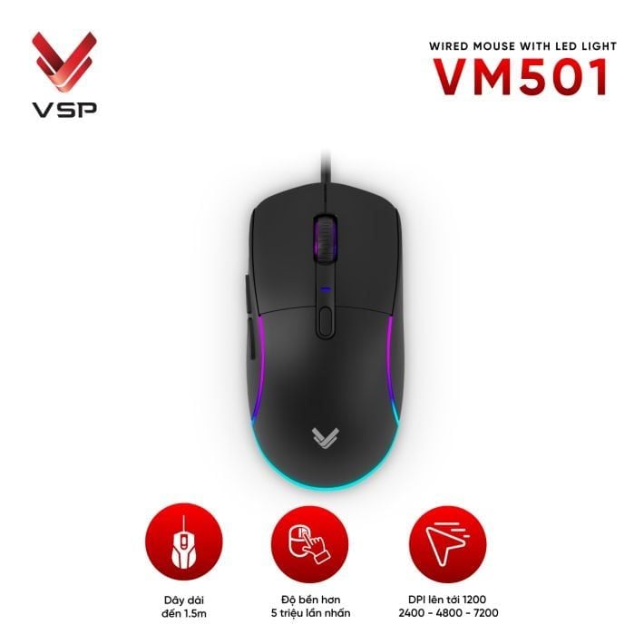 VSP VM501 – Chuột gaming giá tốt, hiệu năng ổn định, thiết kế RGB ấn tượng
