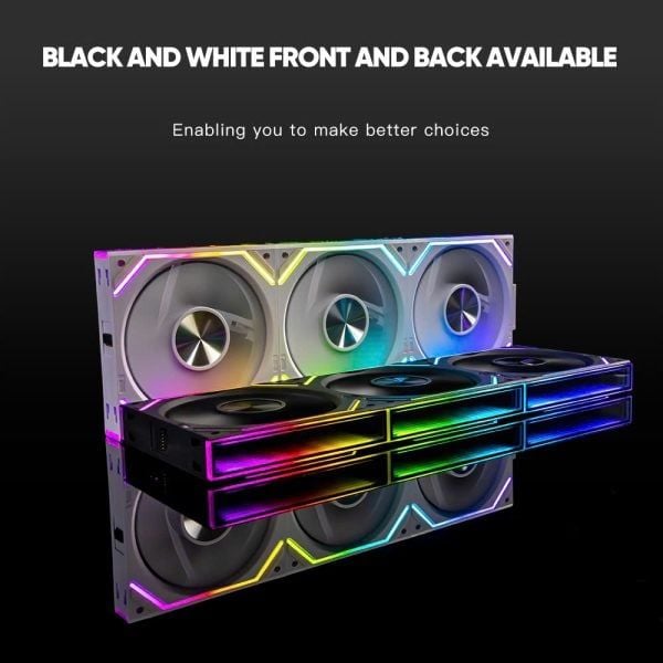 Ngoài ra, chất liệu cao cấp được sử dụng trong quá trình sản xuất đảm bảo độ bền và tuổi thọ của sản phẩm. Thiết kế này không chỉ mang lại hiệu năng tốt mà còn tăng thêm vẻ thẩm mỹ cho hệ thống PC của bạn. Mỗi quạt có trọng lượng 150g, cho thấy sự chắc chắn và chất lượng của sản phẩm.