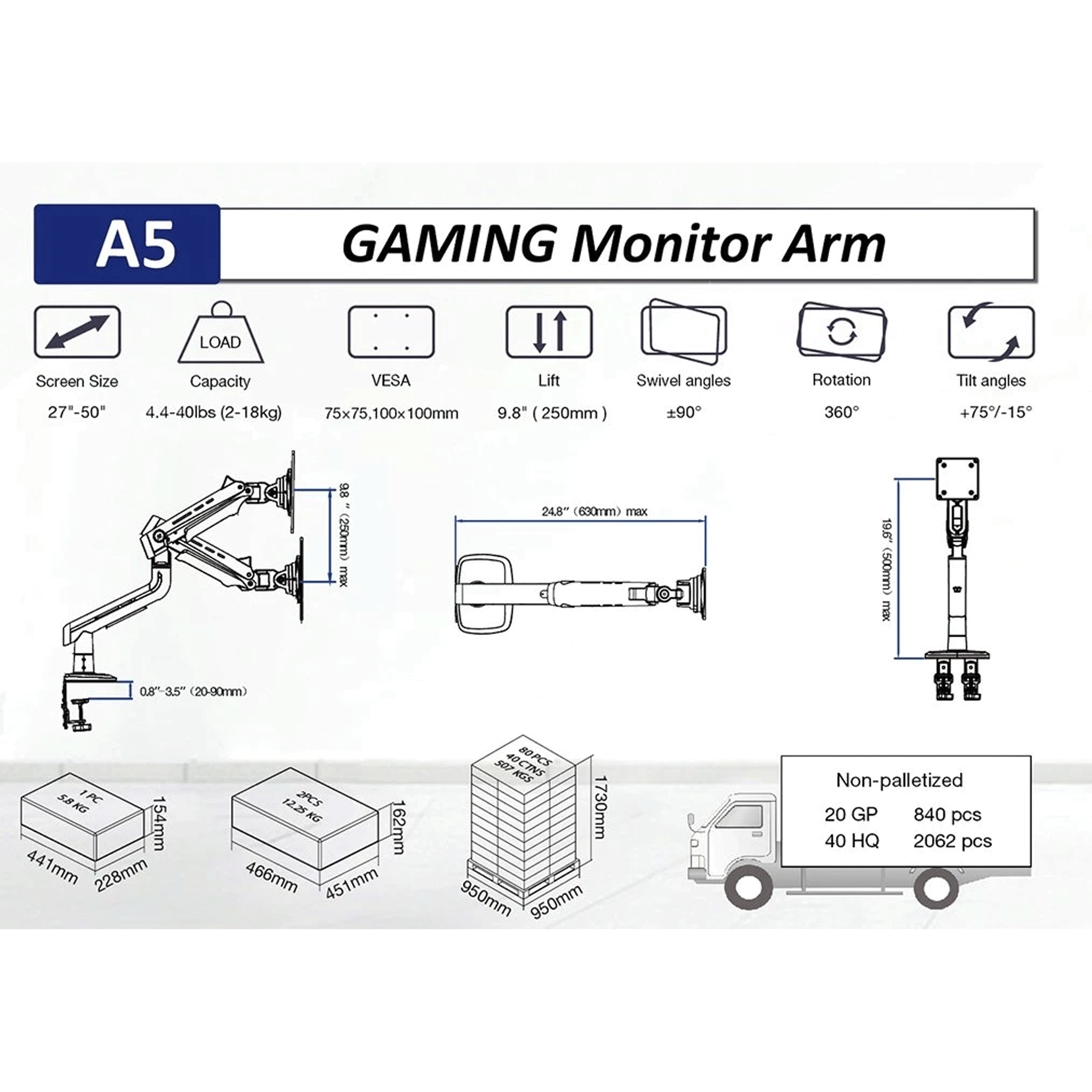 Với khả năng chịu tải lên đến 18kg, North Bayou A5 hỗ trợ tốt các dòng màn hình có kích thước từ 27 inch đến 50 inch. Thiết kế đạt chuẩn VESA 75x75mm và 100x100mm giúp dễ dàng tương thích với phần lớn màn hình phổ thông hiện nay trên thị trường.