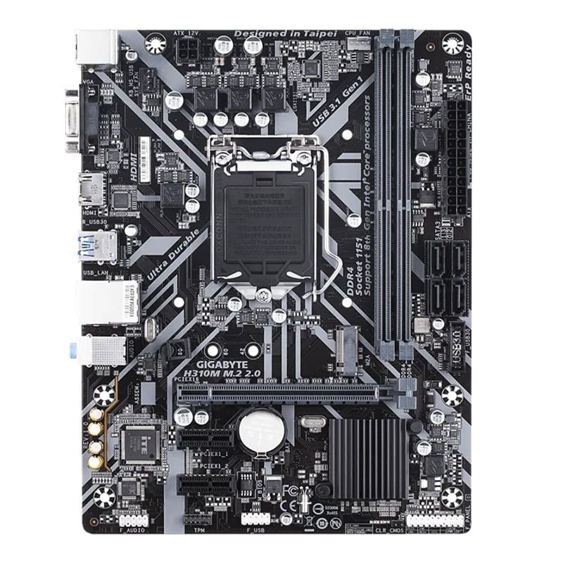 Mainboard Gigabyte H310M M.2 2.0 (rev. 1.x) tập trung vào việc cung cấp một nền tảng phần cứng đủ dùng và đáng tin cậy cho các CPU Intel LGA1151 thế hệ 8 và 9. Việc sử dụng chipset Intel H310 giúp giản lược các tính năng không cần thiết với người dùng phổ thông, đồng thời vẫn giữ lại những kết nối quan trọng như M.2, SATA 6Gb/s, USB 3.1 Gen 1 và LAN Gigabit. Cách tiếp cận này phù hợp với các hệ thống ưu tiên tính ổn định lâu dài và chi phí hợp lý.
