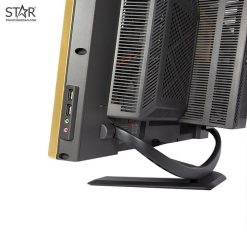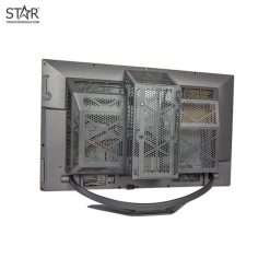 Phần khung nhựa phía sau là khoang chứa linh kiện với khả năng hỗ trợ bo mạch chủ ATX, Dual VGA, Dual HDD. Nếu như để max cấu hình thì hoàn toàn có thể trở thành một chiến binh cao cấp đủ sức cân được phần lớn các game hiện nay ở FHD. Về vấn đề tản nhiệt trong điều kiện có phần khung hầm bí này, các nhà thiết kế đã tận dụng hầu hết bề mặt bên ngoài tạo thành các rãnh hoặc lỗ khí đối lưu giúp tạo ra luồng khí vào ra hợp lý cho hệ thống luôn trong tình trạng ổn định nhất. Chính vì thế với độ dày của màn chỉ chưa đầy 25cm so với độ dày tính cả chân đế rơi vào khoảng 18-21cm của các loại màn hình PC phổ thông thì E320DMG cũng không phải là dày lắm