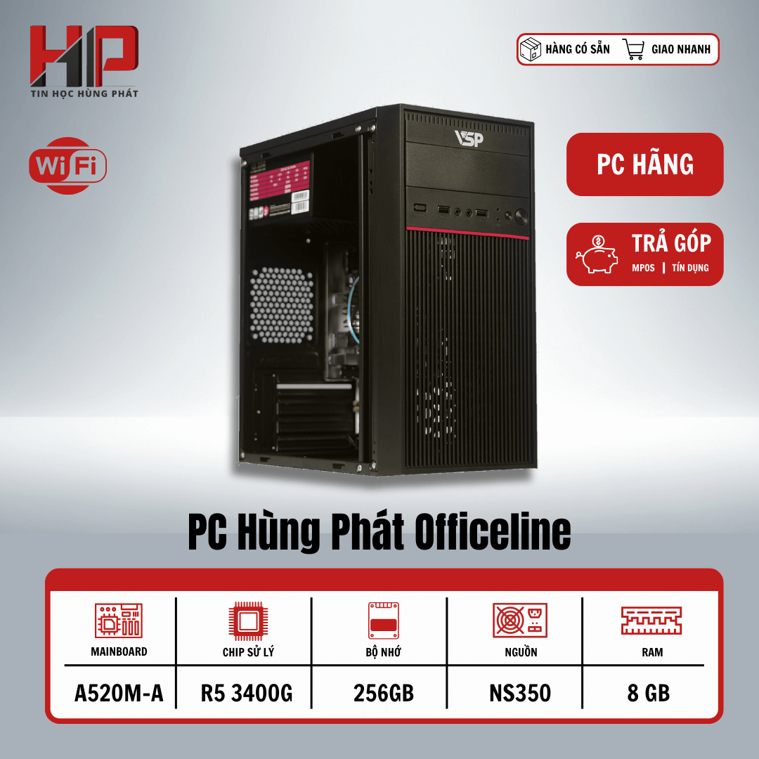 PC Hùng Phát Officeline | AMD Ryzen 5 3400G, RAM 8GB, SSD 256GB – Linh hoạt, tiết kiệm, tối ưu cho văn phòng hiện đại