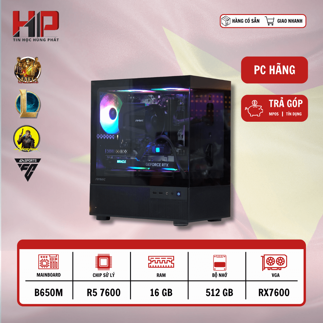 PC Hùng Phát Pegasus B Plus | Hiệu năng mạnh mẽ với Ryzen 5 7600 và RX 7600