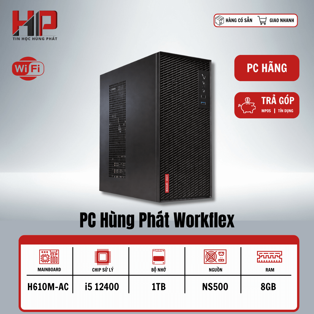 PC Văn phòng Hùng Phát Workflex | Intel Core i5 12400, Ram 8GB, SSD 1TB, WiFi