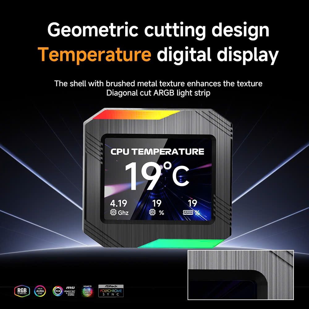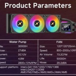 Điểm nhấn của sản phẩm chính là màn hình LCD kỹ thuật số ngay trên bơm, cho phép hiển thị nhiệt độ hoặc logo tùy chỉnh, tạo nên phong cách riêng cho bộ máy của bạn. Kết hợp hiệu ứng ánh sáng ARGB đa vùng cực đẹp mắt, sản phẩm không chỉ hoạt động mạnh mẽ mà còn thể hiện cá tính.