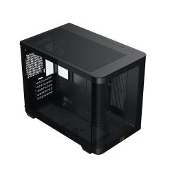 Màu đen chủ đạo tạo nên sự mạnh mẽ và chuyên nghiệp, phù hợp với nhiều phong cách thiết kế PC khác nhau. So với các case Micro ATX khác, Alpha Pano M nổi bật với thiết kế kính cường lực toàn diện, cho phép người dùng phô diễn toàn bộ vẻ đẹp của hệ thống bên trong.